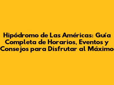 Horarios del Hipódromo de Las Américas: Planifica tu Visita Perfecta