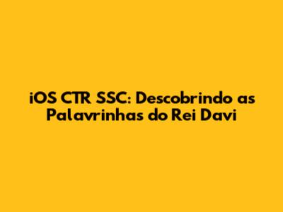 Hey pessoal! Já ouviram falar de iOS CTR SSC e como ele se conecta com as palavrinhas do Rei Davi? Se não, preparem-se para uma jornada superinteressante! Vamos desvendar esse mistério juntos, de forma leve e descontraída, explorando cada detalhe para que vocês entendam tudo direitinho. Afinal, conhecimento compartilhado é conhecimento multiplicado, não é mesmo?