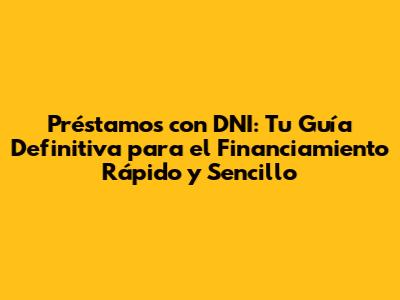 Préstamos Con DNI: Guía Completa Para Obtener Financiamiento Rápido